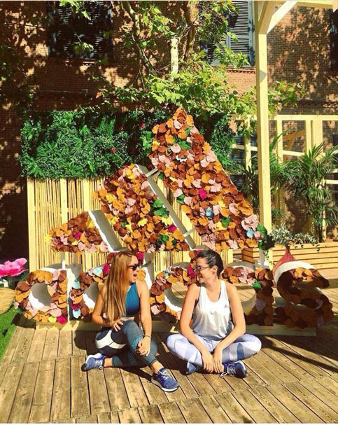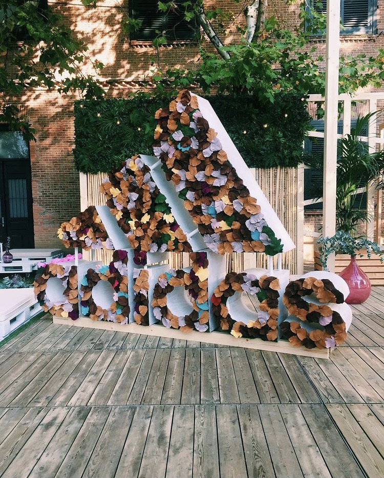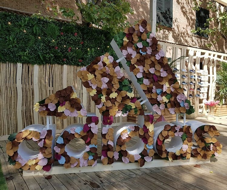 Glamour magazine and Adidas organized a sports event. Talks, meetings, and sporting activities took place throughout the weekend. We were responsible for adding a touch of autumn, making hundreds of sheets of crepe paper in autumnal colors with touches of turquoise and blush pink.